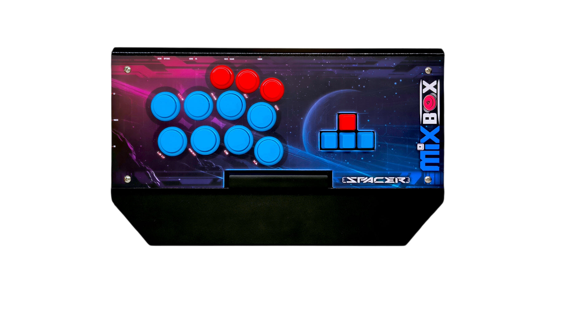 The Mixbox S is a premier leverless controller designed for modern fighting games that demand more than eight attack buttons. Its faceplate features 11 Sanwa Denshi buttons, including a dedicated space bar button that gamers love for intuitive jumping. The Mixbox S delivers precision and versatility for competitive gamers, ensuring top performance in tournaments and casual play.